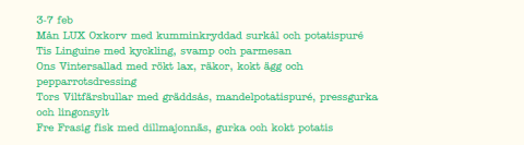 Veckans husman, serveras mellan kl 11.30-14.00 115:- eller 85:- Take-Away