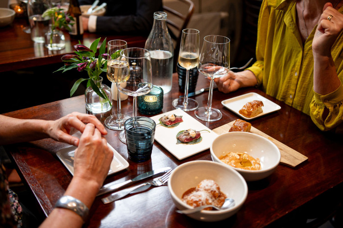 Crudo på gös med grön tomat, shiso, ostronmajonnäs och ponzu 215